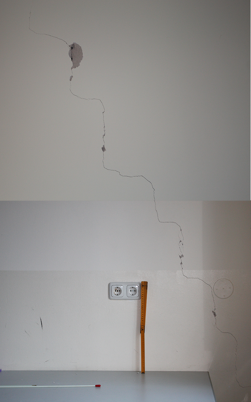 etwa 2 mm breit. Der rechte Riss ist die Gegenseite zum Raum 204.