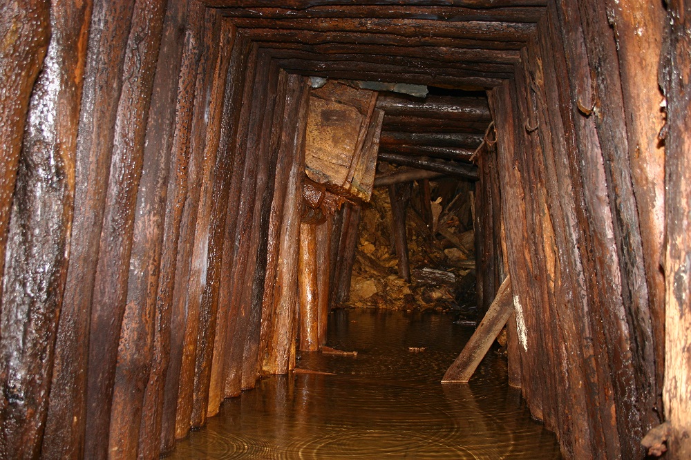 Im Füllort eines (verbrochenen) Schachtes aus den frühen 1950er Jahren.