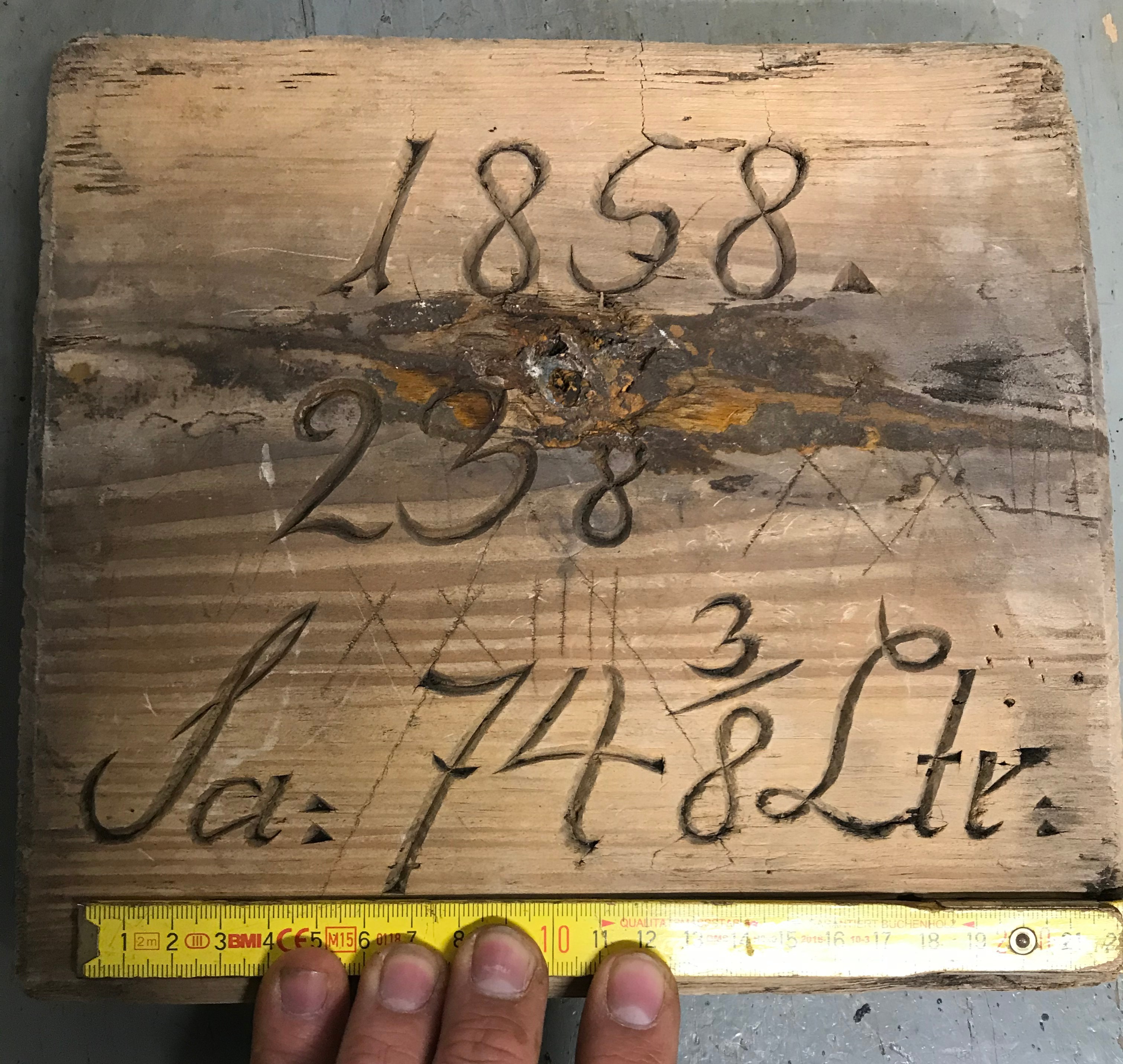 Diese im Mansfelder Bergbau umgangssprachlich meistens als sogenannte "Lachtertafeln" bezeichnete Holztafeln gab es aber nicht nur als Streckenvortriebstafeln mit der Angabe der im jeweiligen Jahr aufgefahrenen Strecke, sondern auch mit anderen Beschriftungen. Beispielsweise auf dem Foto mal nur mit einer Inschrift für das Jahr. Aber auch nur Ortsbezeichnungen oder reine Entfernungsangaben sind auf solchen Tafeln zu finden.