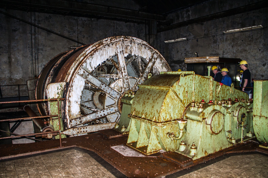 Sie wird Gästen am Goslarer Rammelsberg nur sehr selten gezeigt: Fördermaschine von 1946 am Richtschacht / Niveau Oberer Hängebankstollen; mit exquisitem Rost- und Myzelbefall (Bild von 2013)