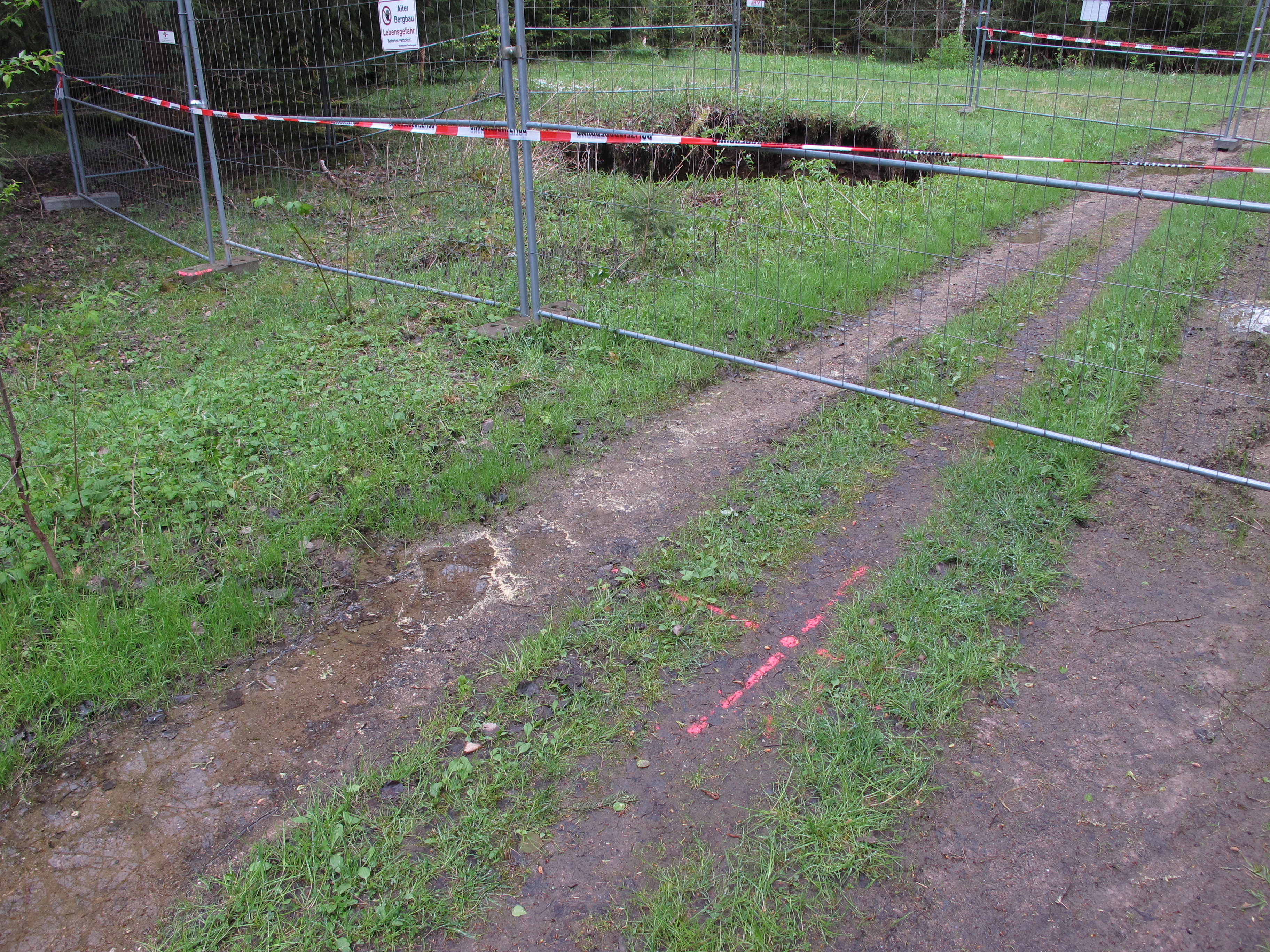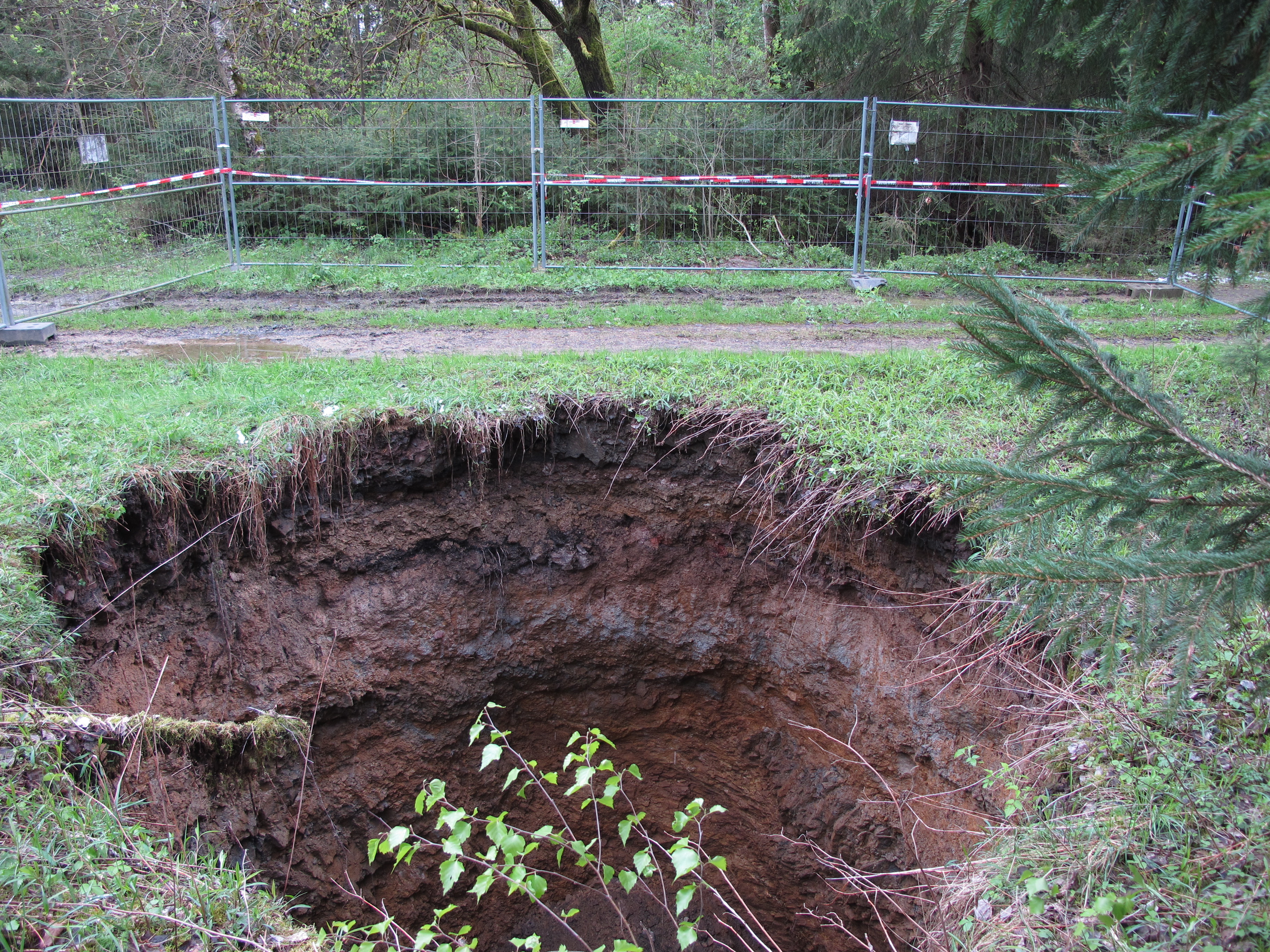 Also der Schacht selbst ist es nicht, der ist ja mit Stacheldraht eingezäunt und das Loch ist ca. 20 Meter daneben.