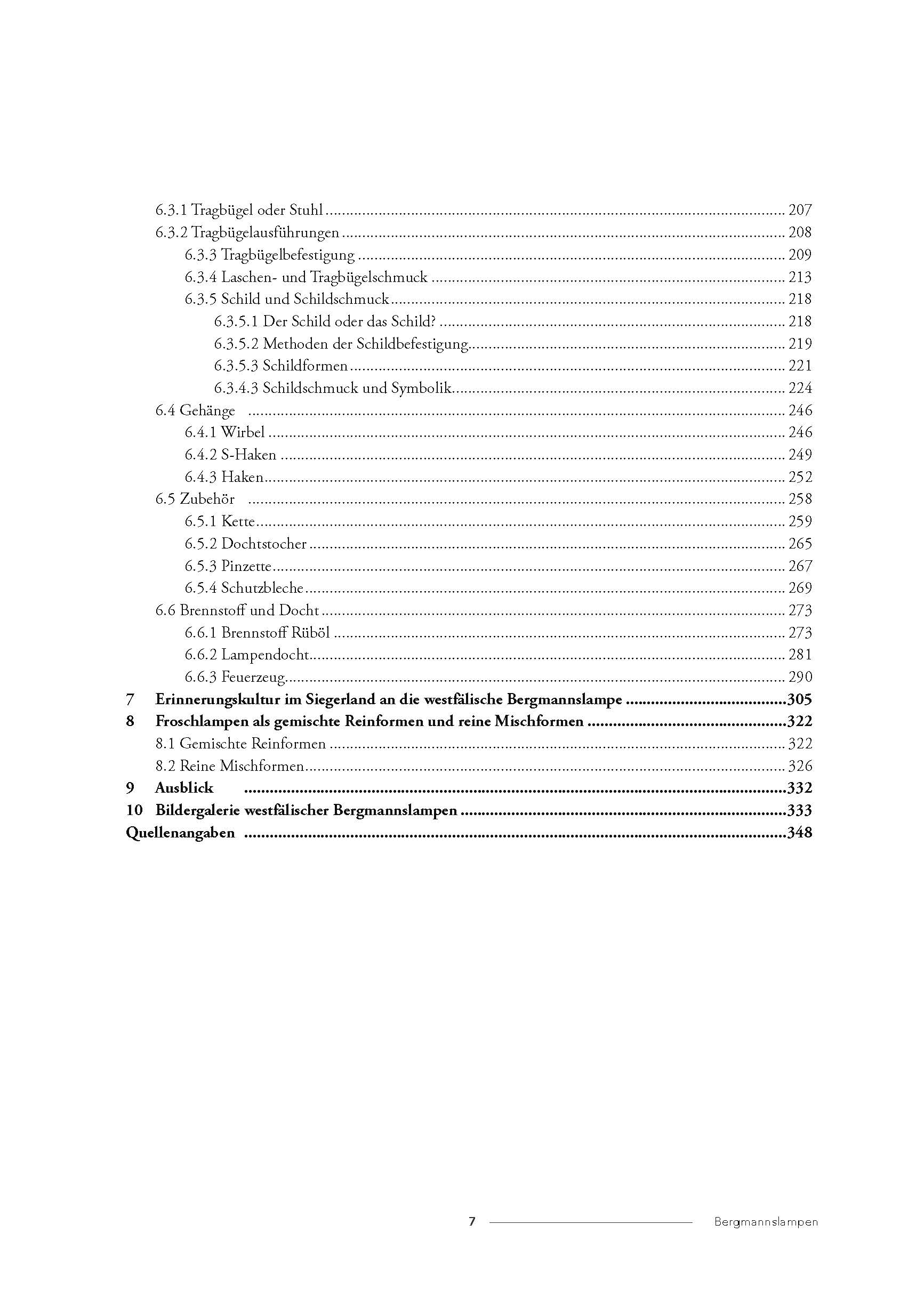 Das Kapitel ‚Erinnerungskultur an die Bergmannslampe‘ beleuchtet ausführlich das Weiterleben der Froschlampe nach dem historischen Gebrauchszeitraum und nach dem Wechsel zu moderneren Beleuchtungsformen im Bergbau. Den Abschluss der Studie bilden eine Bildergalerie mit Typologie sowie zeitlicher Einordnung der verschiedenen Bauformen westfälischer Bergmannslampen und ein umfangreicher Anmerkungsapparat mit Quellenangaben, der aus Gründen der besseren Lesbarkeit des Haupttextes ans Ende gestellt wurde und Interessierten ermöglicht, sich weitergehende Informationen in den Referenzen zu erschließen.