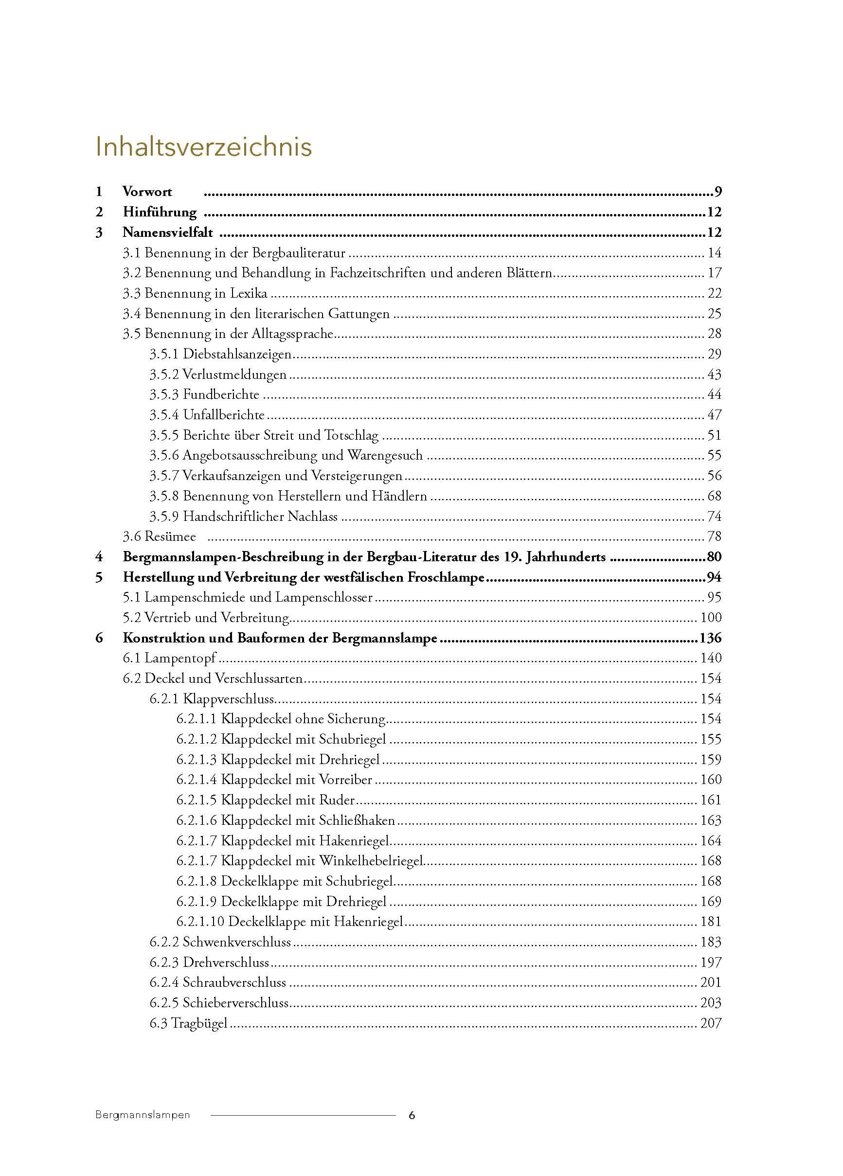Der zentrale Fokus der Studie liegt auf der Untersuchung und detaillierten Beschreibung der vielfältigen Konstruktionsmerkmale, der Formensprache, Herstellung, Verbreitung und auf dem Gebrauch der westfälischen Bergmannslampen im zeitlichen, sozialgeschichtlichen und herstellerseitigen Kontext. Ebenso werden für das Gesamtverständnis wichtige Nebenaspekte, wie Feuerzeug, Brennstoff und Dochtmaterialien sowie die Ölbevorratung behandelt, umfangreich unterstützt durch historische Bild- und Textquellen.
